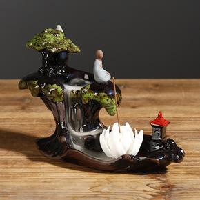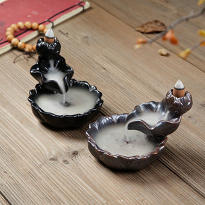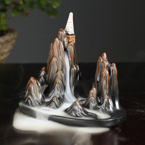 跨境树脂檀香倒流香薰炉家居摆件创意高山流水烟倒流炉...