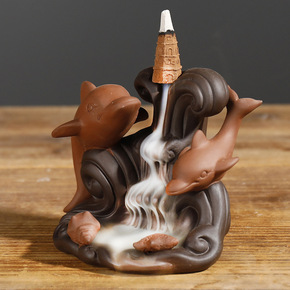 跨境紫砂观赏塔香烟倒流香炉创意海洋动物海豚檀香倒流...