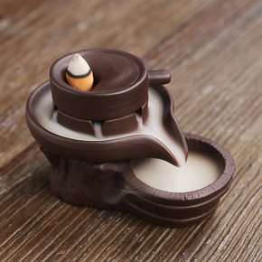 供应紫砂大号倒流香炉佛教用具 创意熏香炉工艺摆件香...