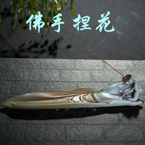 跨境亚马逊爆款佛手白莲花倒流香炉创意蓝色窑变釉佛手...