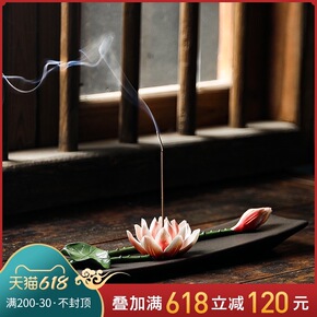 厂家直销陶瓷线香香薰炉陶瓷摆件 复古竹叶线香插香插...