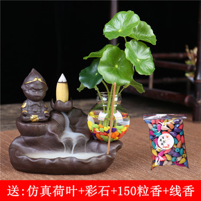 倒流香炉紫砂小和尚孙悟空香插花香熏炉陶瓷香道家居办...
