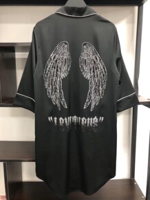 欧美新款学院风衬衫式翻领男友衬衫字母睡裙燕尾式外穿...