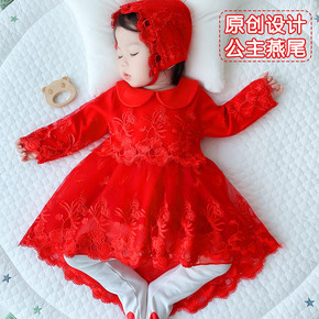 女宝宝周岁礼服春秋款婴儿一岁公主裙长袖女宝的满月生...