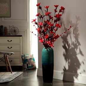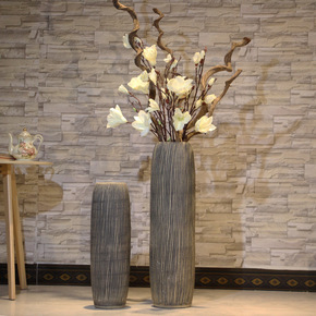 陶瓷花瓶摆件复古中式细高陶罐干花插花大号落地花瓶玄...