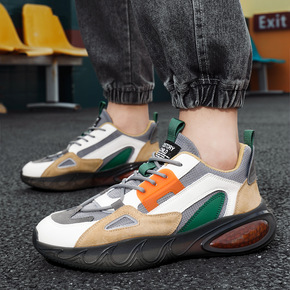 男鞋春季新款低帮休闲鞋爆米花厚底运动鞋潮流拼接款网...