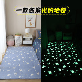 儿童夜光床边可爱短绒卧室地毯新奇荧光地垫房间爬行垫...