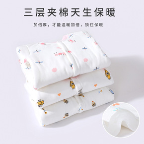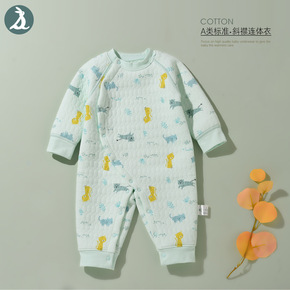 婴儿连体衣秋冬套装夹棉宝宝保暖外出秋装新生儿冬装哈...