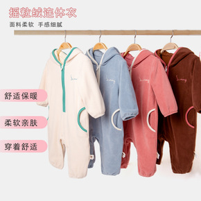 加厚连帽长款双面毛绒婴儿连体服秋冬外出包屁衣男女宝...