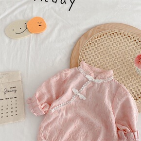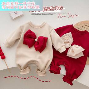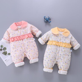 女宝宝洋气夹棉连体衣秋冬装新生儿纯棉哈衣爬服婴儿衣...