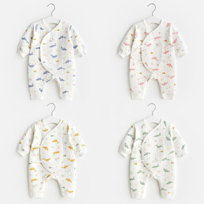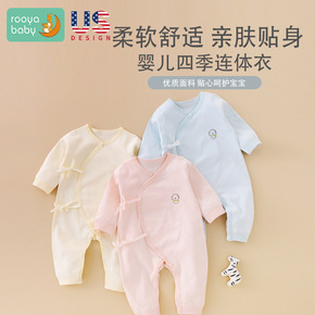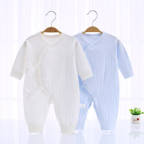 工厂直供新生儿纯棉秋春夏长袖连体哈衣婴儿偏襟连身衣...