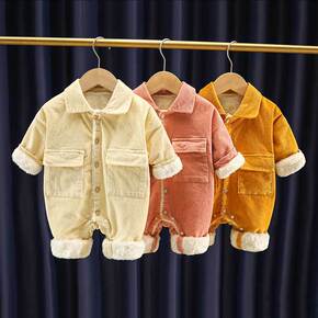 秋季新品加绒连体衣新生儿长袖外出服婴幼儿灯芯绒加厚...