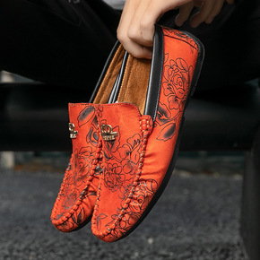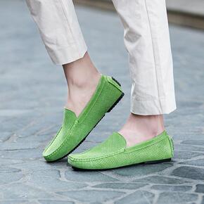 驾车鞋男蓝色豆豆鞋男桔色夏天鞋子男透气男鞋无带懒人...