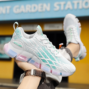 夏季户外透气超轻跑步运动鞋男士爆米花飞织网面软底防...