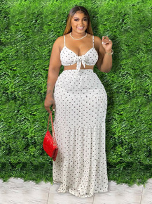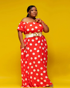 2021欧美新款平台独立站热卖圆点印花一字肩显瘦性...
