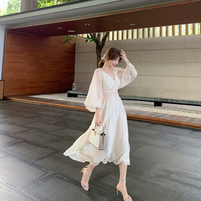 2021新款ins网红爆款跨境女装热卖绑带性感V领...