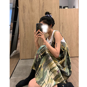 21SS/ 艺术生女孩来了!晕染印花V领背带裙女 ...