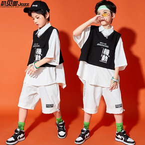 街舞儿童潮装嘻哈男童宽松短袖衬衫夏女童爵士舞表演服...