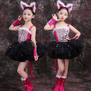 元旦儿童演出服蓬蓬裙幼儿园小学生爵士舞小猫咪舞蹈动...