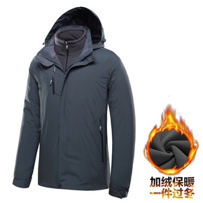 中老年冲锋衣男冬季加肥加大爸爸装三合一可拆卸加绒加...