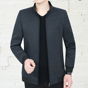 夹克男2021秋冬新款商务休闲茄克中老年爸爸装宽松...