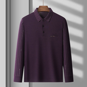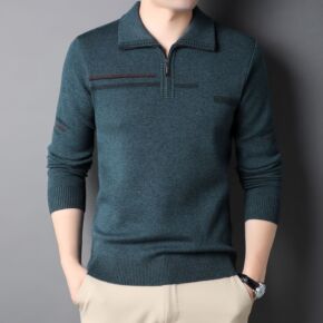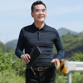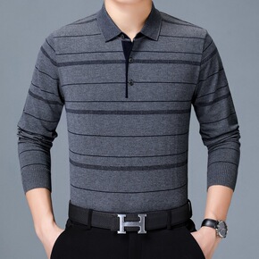 2021秋季男士翻领羊毛针织衫条纹毛衣休闲毛衫长袖...