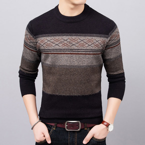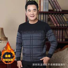秋冬季新款男士男装加绒加厚毛衣爸爸装中老年大码针织...