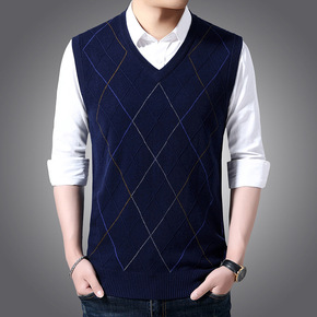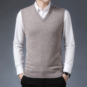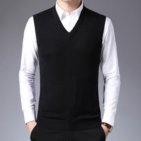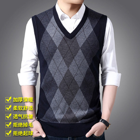 男士羊毛背心男春秋季中老年针织衫马甲毛线坎肩薄爸爸...