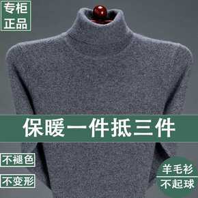 冬季新款山羊绒中年长袖针织衫大码毛衣高领男式保暖爸...