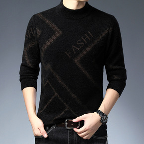 2021冬季新款羊绒衫男式半高领套头羊毛衫中青年爸...