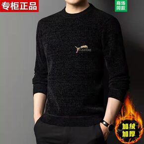 2021冬季新款加绒加厚针织休闲雪尼尔上衣纯色男士...