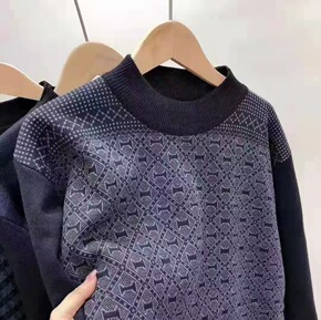 男士雪尼尔加绒加厚半高领冬季中年印花休闲针织爸爸装...