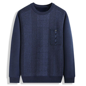 一件代发毛衣男加绒加厚中年爸爸装套头圆领有口袋针织...