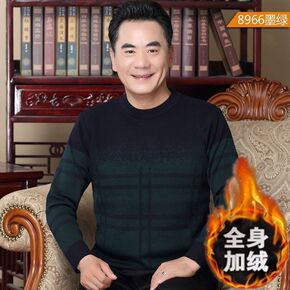 加绒加厚冬季毛衣中老年圆领长袖针织衫爸爸装打底衫男...