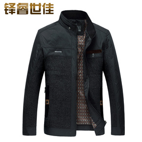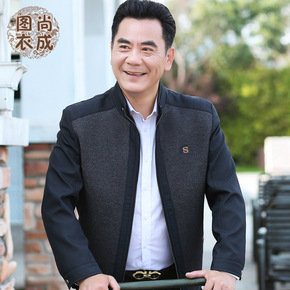 欧洲站男士外套夹克春秋季中老年人含羊毛商务休闲翻领...