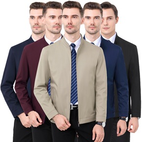 2021男士夹克薄款外套中年商务翻领夹克男休闲春秋...