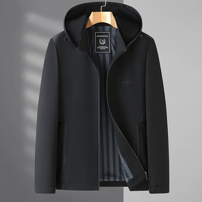春季新款纯色夹克爸爸装中年显瘦宽松版型立体连帽酷帅...