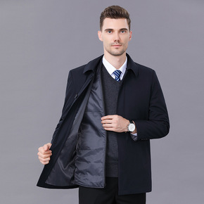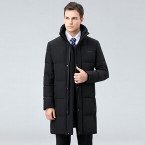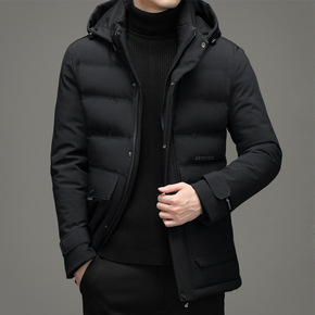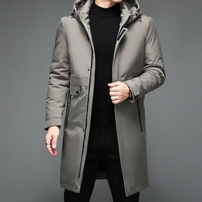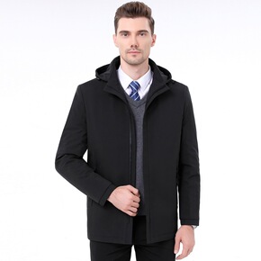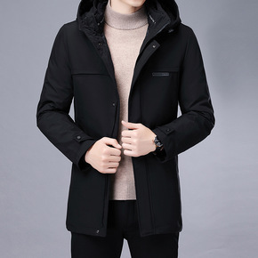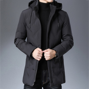 烟罗男装|男士中长款连帽棉衣爸爸外套中年冬季加厚保...