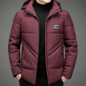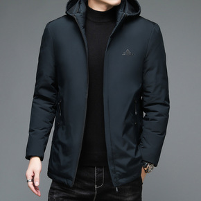 源头厂家2021冬季纯色加厚现货中老年爸爸装连帽合...
