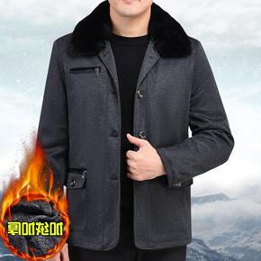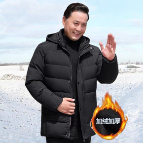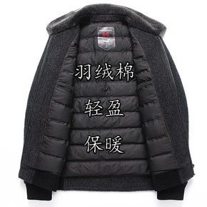 新款中老年爸爸装加绒加厚棉衣中年男士棉服可推卸毛领...