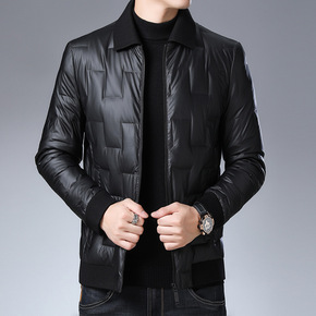 羽绒服短款中年男士轻薄商务休闲翻领羽绒外套中老年爸...