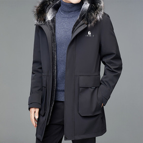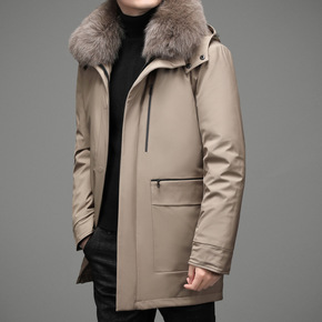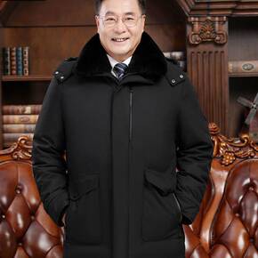 2021中老年男装羽绒服男北方加厚中长款狐狸毛领爸...