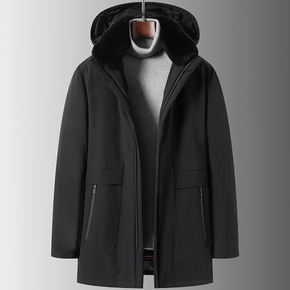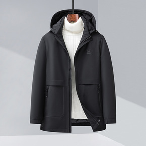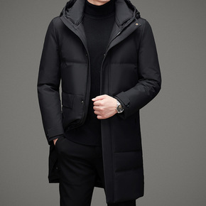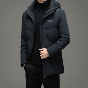 2021冬季新款中年羽绒服男士中长款连冒防风加厚爸...