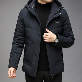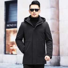 时尚休闲冬季中年男羽绒服2021年新款男士可拆帽爸...