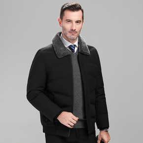 男士冬装保暖羽绒服中老年爸爸羊毛翻领防寒羽绒衣男装...