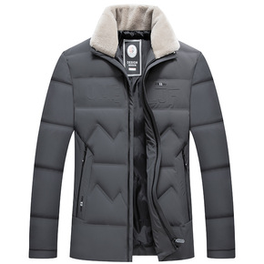 中年男士冬季羽绒服短款保暖翻领修身夹克外套加厚中老...