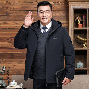 中年爸爸装冬季羽绒服中老年男保暖可拆帽防寒外套男加...