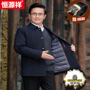 羽绒服男2021款冬季加厚中老年爸爸装可卸内胆商务...