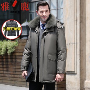 羽绒服男中长款活里活面中老年男装羽绒服拆卸内胆爸爸...