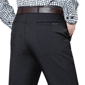 春秋款男士休闲裤直筒西裤宽松爸爸长裤高腰中年秋季弹...
